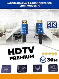 Кабель HDMI 4K 2.0 high speed 30м (силиконовый)