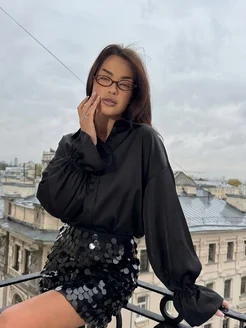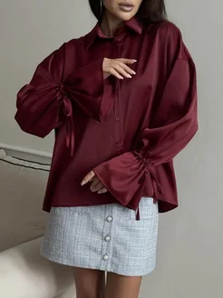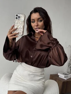 Рубашка блузка оверсайз нарядная шелковая в школу и офис