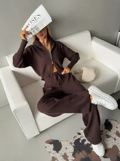 Костюм вязаный трикотажный на молнии теплый с брюками