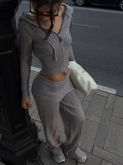 Костюм кашемировый с широкими штанами и лонгсливом pinterest