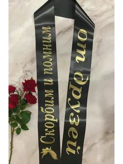 Лента траурная черная "Скорбим и помним от друзей" 160 см