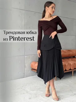 Юбка плиссе миди с баской