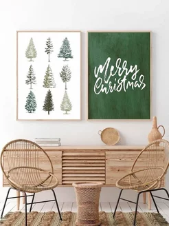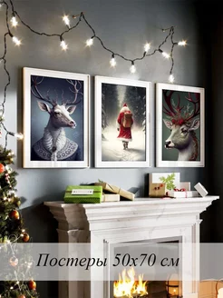 Интерьерные постеры новогодние плакаты 50х70 см набор