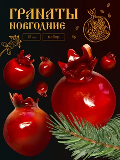 Елочные украшения трендовые "Красные гранаты" - 15 шт
