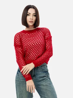 Свитер синий удлиненный вязаный оверсайз тонкий