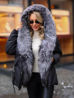 Пуховик короткий с натуральным мехом