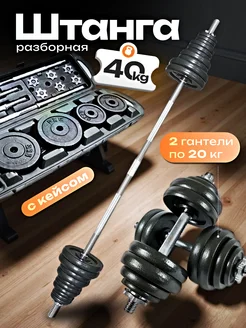 Гантели разборные и штанга в кейсе для спорта 40 кг