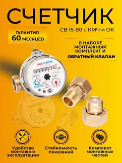 Счетчик воды ЭКО НОМ-15-80 с комплектом монтажных частей