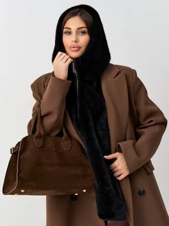 Манишка с капюшоном женская меховая шоколадная