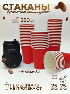 Одноразовые стаканы бумажные для кофе 250 мл с крышками