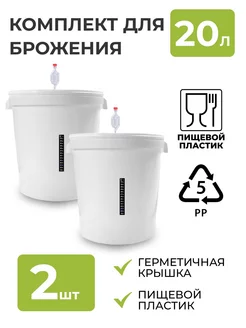 Бак для брожения 20л (с гидрозатвором и термометром) 2 шт