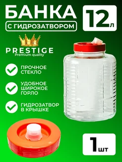 Банка "Prestige" стеклянная 12 л с крышкой и гидрозатвором