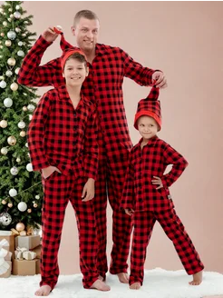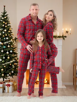 Пижама новогодняя в клетку со штанами Family look