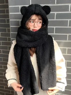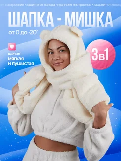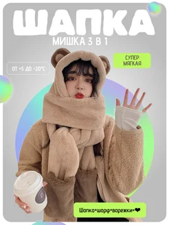Шапка с ушками милая, шарфом и варежками