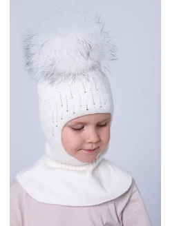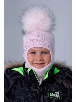 Шапка-шлем для девочки с помпоном зимняя