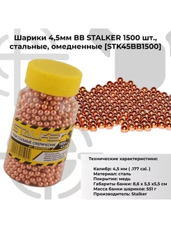 Шарики 4,5мм ВВ 1500 шт, стальные, омедненные