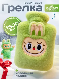 грелка резиновая водяная лабубу с мягким чехлом 1500мл