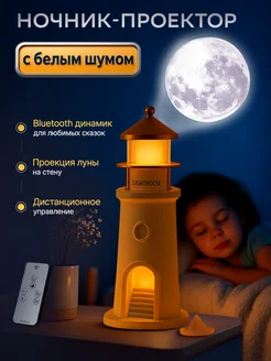 Ночник маяк с проекцией луны белым шумом и bluetooth