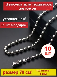 Цепочка 3 мм мужская 70 см "армейская" для жетонов 10 шт
