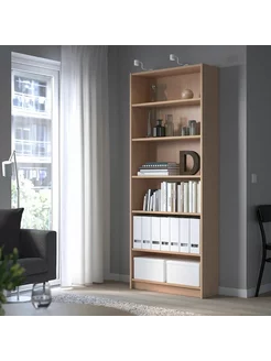 Стеллаж ИКЕА Билли, 80x28x202 см, дуб беленый