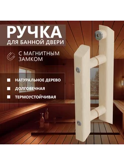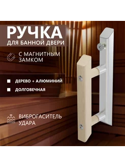 Ручка для банной двери, алюминий-дерево, магнитный замок