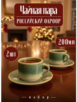 Чайная пара фарфоровая набор посуды кружка и блюдце 2 шт