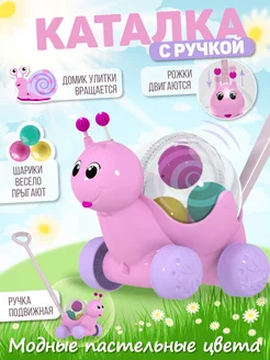 Каталка с ручкой Улитка Розовая