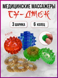 Мяч массажный су джок 3 шт и 6 пружинок суджок для массажа