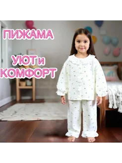 Пижама для девочки муслиновая со штанами и рубашкой