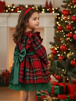 Платье нарядное новогоднее для девочки в клетку