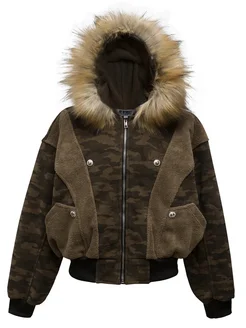 Худи кроп кофта осенняя с мехом камуфляжная флисовая y2k