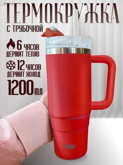 Термокружка с трубочкой и ручкой термос 1200 мл для кофе