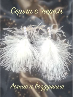 Заколка для волос из перьев "Лебединое крыло с подвеской"