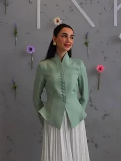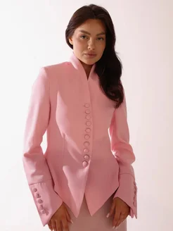 Пиджак приталенный с коротким рукавом и баской