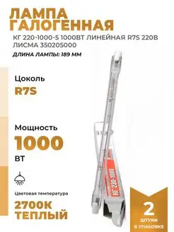 Лампы галогенные кг 220 1000 5 1000вт линейные r7s 220в 2шт