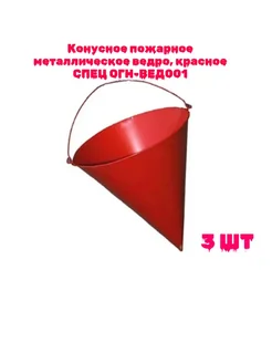 Конусное пожарное металлическое ведро, красное, 3 шт