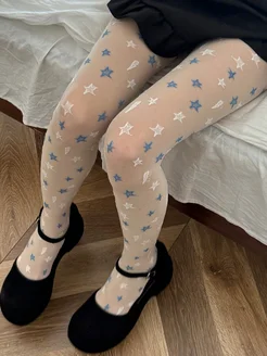 Женские Колготки Y2K coquette с бело-синими звездочками