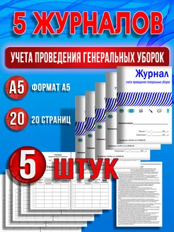 5 шт Журнала учета проведения генеральных уборок 20 ст