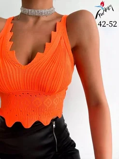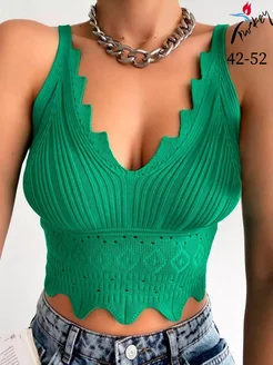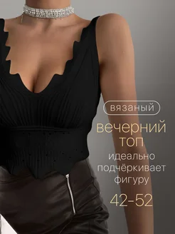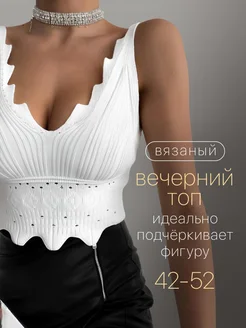 Топ вечерний под пиджак кроп вязаный с вырезом летний