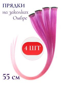 Цветные пряди на заколках набор 4 шт