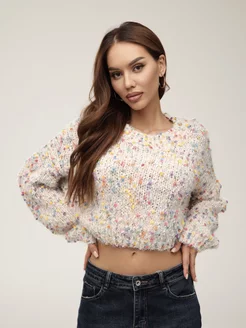 Свитер оверсайз укороченный вязаный объемный
