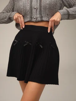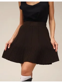 Юбка трикотажная мини клеш в складку