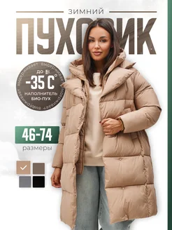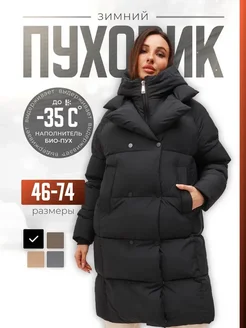Пуховик зимний удлиненный с капюшоном, куртка оверсайз