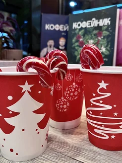 Одноразовые бумажные стаканы 300 мл 50 шт новогодние микс