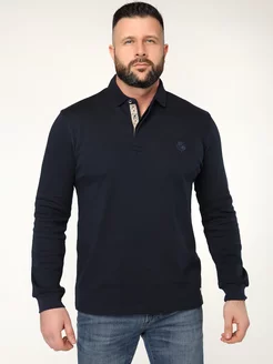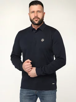 Лонгслив хлопок поло однотонный с длинным рукавом