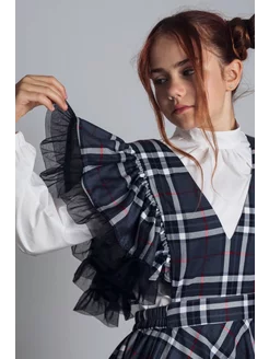 Блузка шелковая женская белая нарядная с коротким рукавом