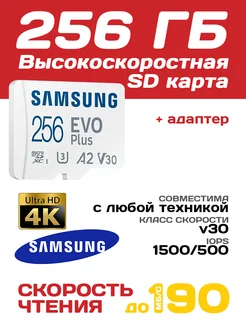 Карта памяти Samsung EVO PLUS 256 гб, Micro SD 4K видео