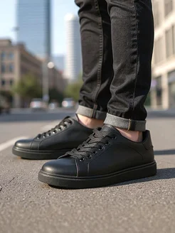 Кроссовки осенние черные экокожа
