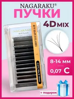 Готовые пучки 4D 0,07 D микс 8-14 мм ресницы НАГАРАКУ