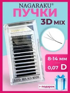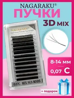 Готовые пучки 3D 0.07 D микс 8-14 мм ресницы НАГАРАКУ